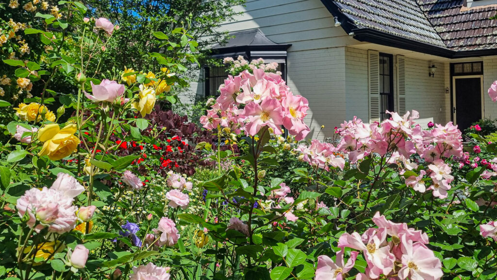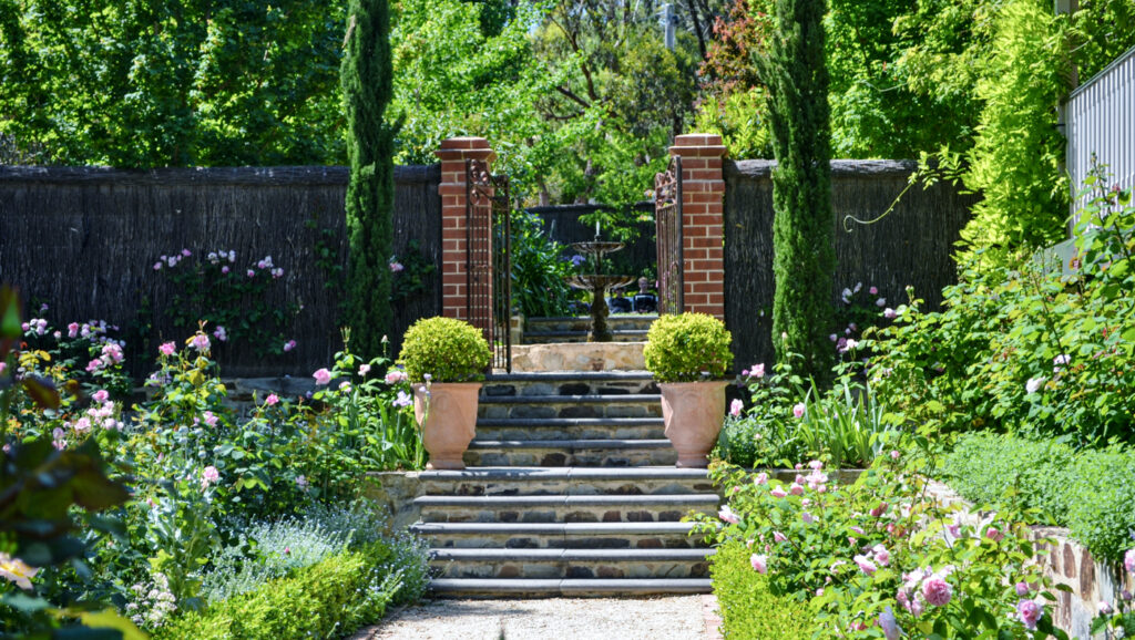 Al Ru Farm is a big, bold and beautiful garden of richly planted garden rooms – ten acres of Al Ru farmland has been turned into a vibrant and creatively designed garden filled with flowers throughout the seasons. A series of richly planted garden rooms each has its distinctive style and palette of plants. There are colour-themed perennial borders, a wide wisteria and rose-covered arch leading into the ‘wedding garden’ where white roses climb up and over black lattice work, a formal box-edged garden and a delightfully informal wild area where perfumed freesias and tiny white lawn daisies have been left to naturalise. Meandering paths wind through the woodland garden, which in spring feels joyful with vivid pink silene, lime green euphorbia, bluebells, honesty, columbines, campanula, hollyhocks and head-high Queen Anne’s lace. The blossom of six different varieties of crab apple, ranunculi and Dutch iris in shades of white, yellow and blue create spectacular drifts of colour.