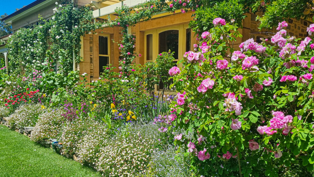 St Ann’s is a magnificent two-storey home set in an acre of outstanding, manicured gardens, creatively planted with a selection of choice trees and shrubs that flourish in the cool Adelaide Hills’ microclimate.